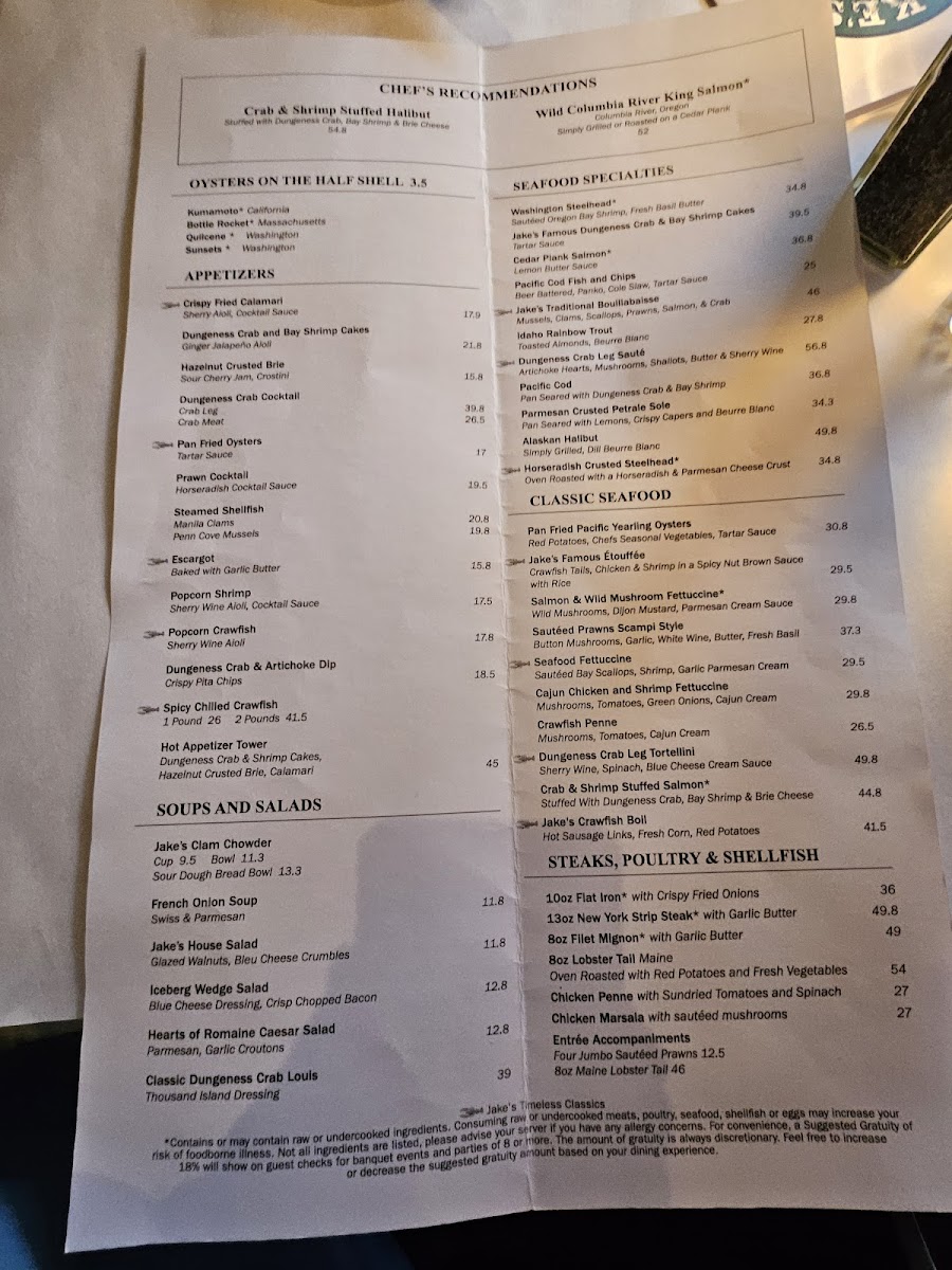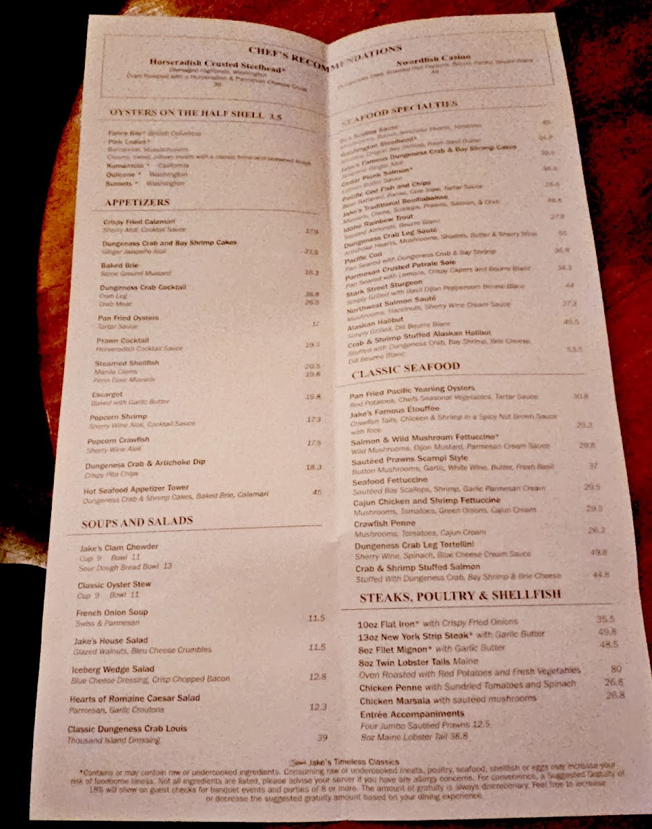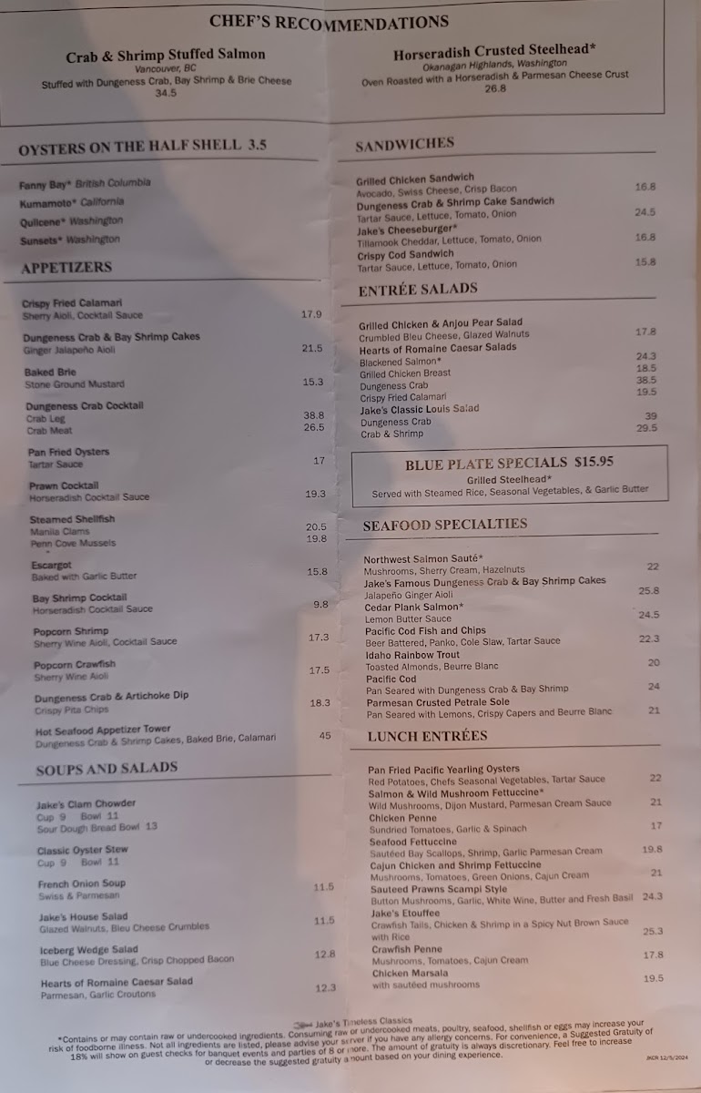 Welcome to Jake's Famous Crawfish, a seafood haven located in the heart of Portland, Oregon. Offering an inviting atmosphere reminiscent of an old-school dining experience, Jake's is famous for its impeccable service and mouthwatering dishes. The menu shines with options like the Crawfish Penne, featuring a perfect balance of heat and flavor, and the Famous Étouffée, which captures the essence of comfort food. Don’t miss the crispy Popcorn Crawfish appetizer or the decadent Dungeness Crab Cakes. For dessert, the Seasonal Cheesecake is a must-try—delightfully crafted by the chef. Whether you're dining indoors or basking outside, the warmth of the experience is palpable. Reservations are highly recommended due to its popularity. Dive in and revel in the vibrant flavors that have made Jake's a cherished staple for seafood aficionados.
